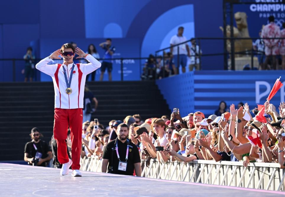 巴黎奥运会期间,龙道一在冠军公园与现场观众互动。图片